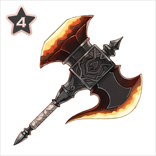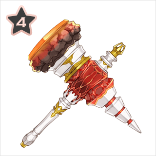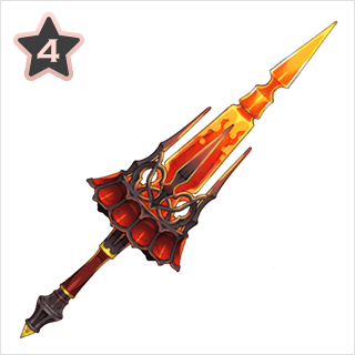 装備種が槍扱いとなり武具属性が「槍」に変化、スキルが「火裂の神撃」に変化 <上限解放1>攻撃力20アップ、素早さ10アップ <上限解放2>攻撃力41アップ、素早さ19アップ <上限解放3>攻撃力62アップ、素早さ30アップ <上限解放4>攻撃力83アップ、素早さ39アップ (※ステータス変化は戦闘中のみ) |