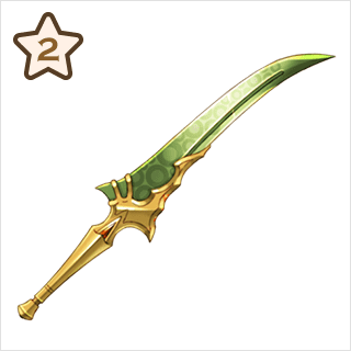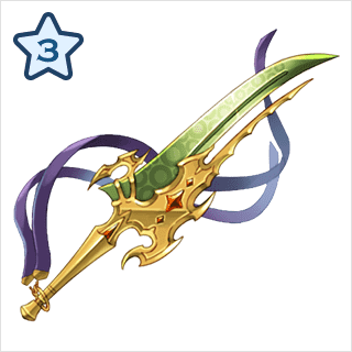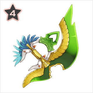 上限解放により効果発動。 精霊以外のキャラが装備時 攻撃力が1~60増加(武具Lvに依存、上限解放により増加値上限が段階的に開放) (※ステータス変化は戦闘中のみ) |