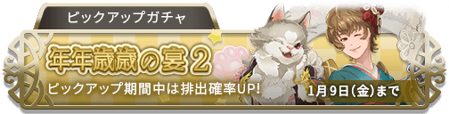 さらに12/30~1/3の5日間は「年年歳歳の福袋」のおまけに「9周年チケット」が1日1回だけ付属します。