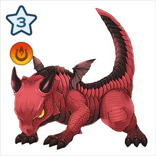 <進化元キャラ> 火竜フィオドレ <進化素材> 炎竜の牙×50 炎竜の爪×50 炎竜の尻尾×30 炎竜の角×5 炎竜の紅玉×3 |