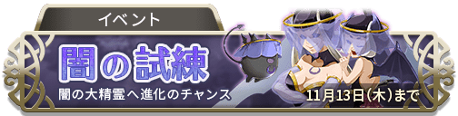 イベント開催に合わせ月曜クエスト「闇の試練」は一時休止されます。 イベント終了後、メンテナンスにより通常の曜日クエストに戻ります。