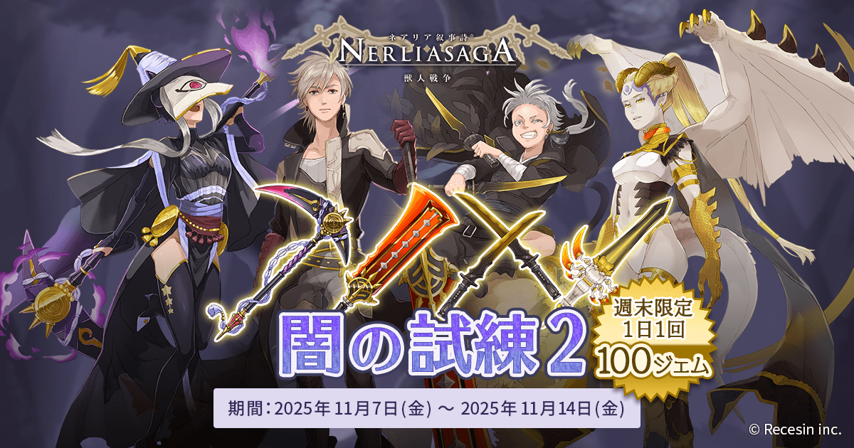 ※「闇の試練1」は11/10 0時に一時的に非表示になりますが、まもなく再開し、11/14 12:59まで実施されます