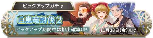 イベント期間限定の、ガチャ「白嵐竜討伐2」が登場します。