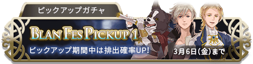イベント期間限定のピックアップガチャ「ブラン祭PickUp1」が登場します。