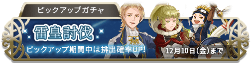 イベント期間限定の、ピックアップガチャ「雷皇討伐」が登場します。