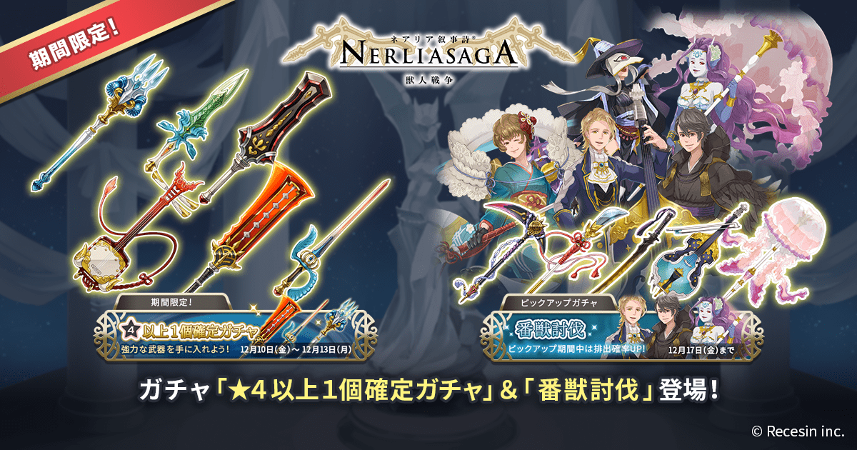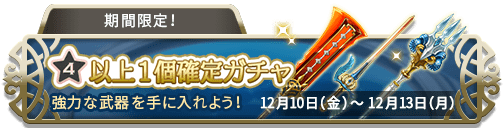 12/10から4日間限定で「☆4以上1個確定ガチャ」が登場します。